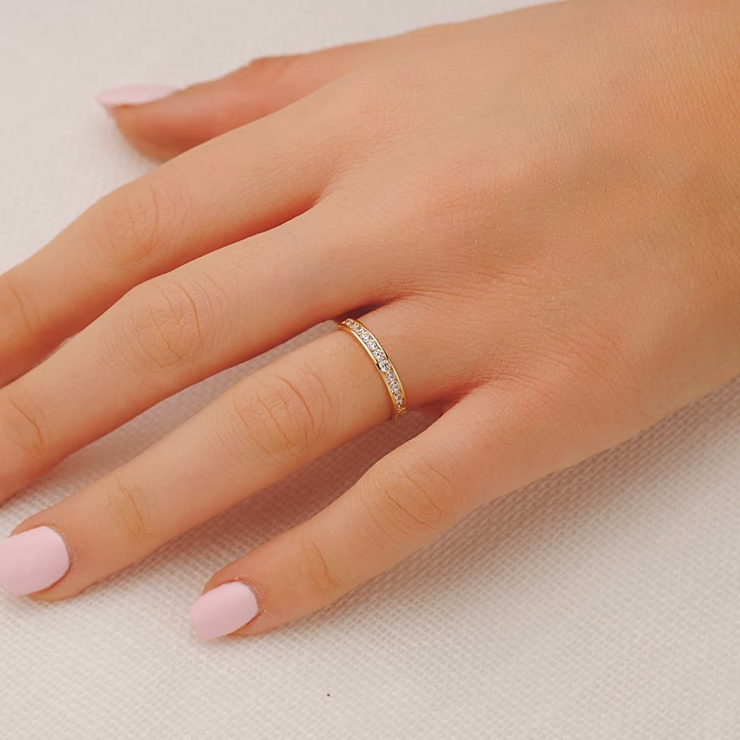 Sé el primero en valorar “18k alianza oro amarillo circonita redondas. ancho cuerpo 2,5 mm”