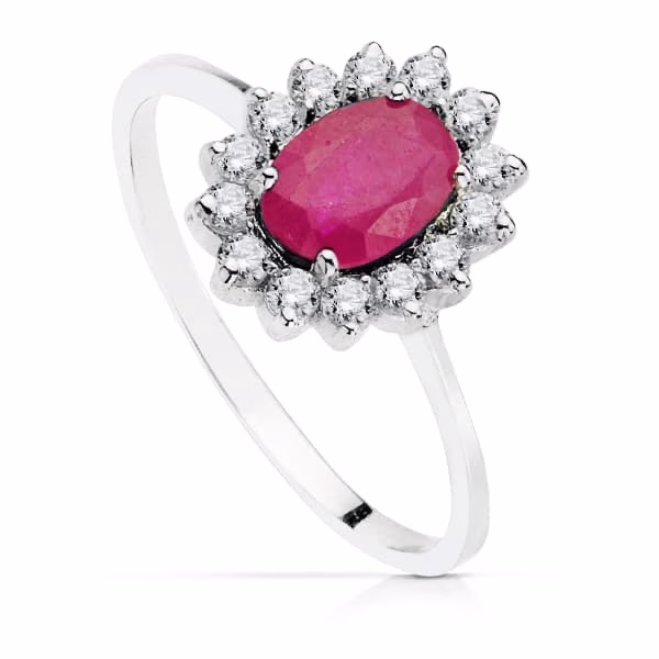 18k sortija oro blanco piedra fina rubi 7x5mm con circonitas