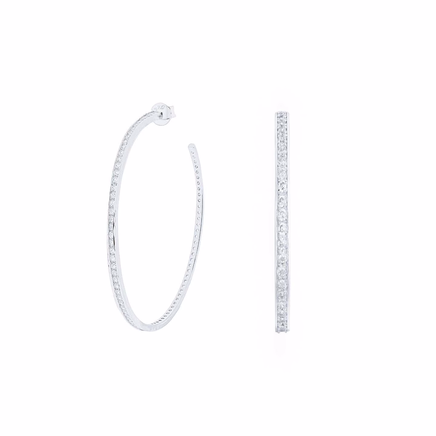 Aros de plata bañada en rodio con circonitas 50 mm