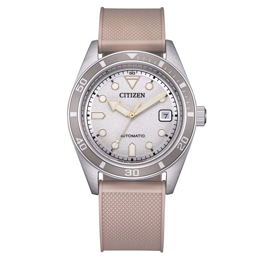 Caja de acero de 38,5 mm. de diámetro, 11,5 mm. grosor, con fondo transparente cerrado a rosca. Bisel fijo. Correa poliuretano pink. Luminous en agujas e índices. Calendario. WR 10 bar.