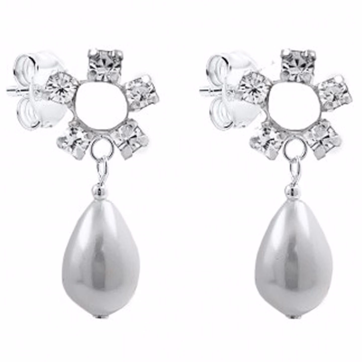 Pendiente de plata perla acrilica gota y flor
