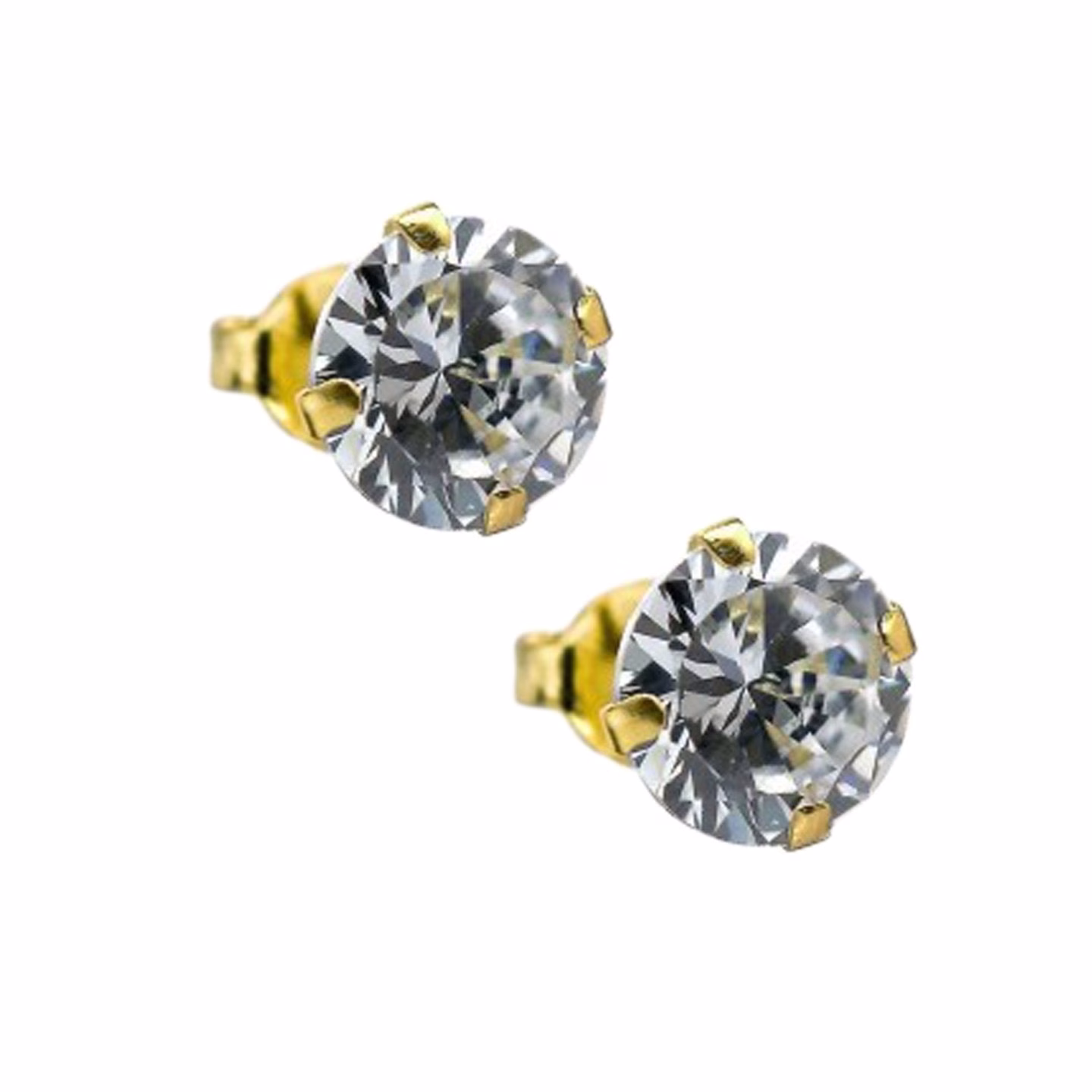 Pendiente plata chapado en oro circonita 7 mm