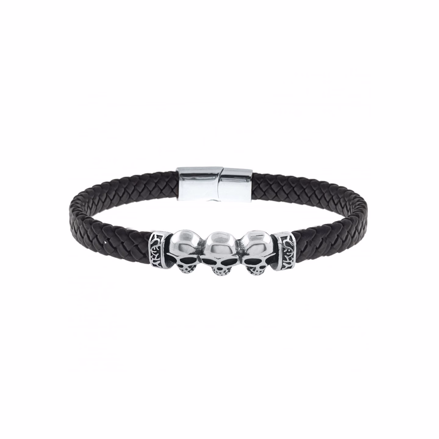 Sé el primero en valorar “pulsera acero y cuero negro 3 calavera”